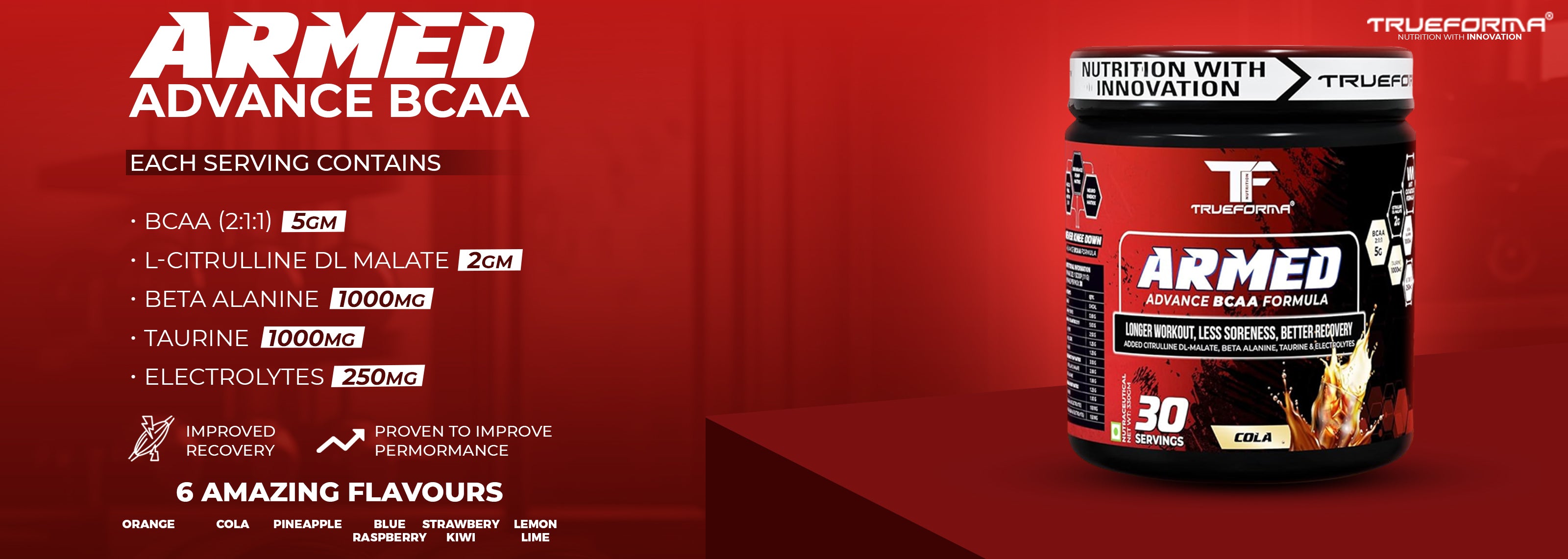 Trueforma® Advanced BCAA Formula is a premium intra-workout powder designed to enhance performance, endurance, and muscle recovery. It contains a Muscle Fuel Matrix (2:1:1 ratio of L-Leucine, L-Isoleucine, L-Valine), along with L-Citrulline DL-Malate, Beta-Alanine, and Neuro Energy Matrix (Taurine, Sodium, Potassium)to support sustained energy levels, reduce soreness, and improve workoutefficiency.